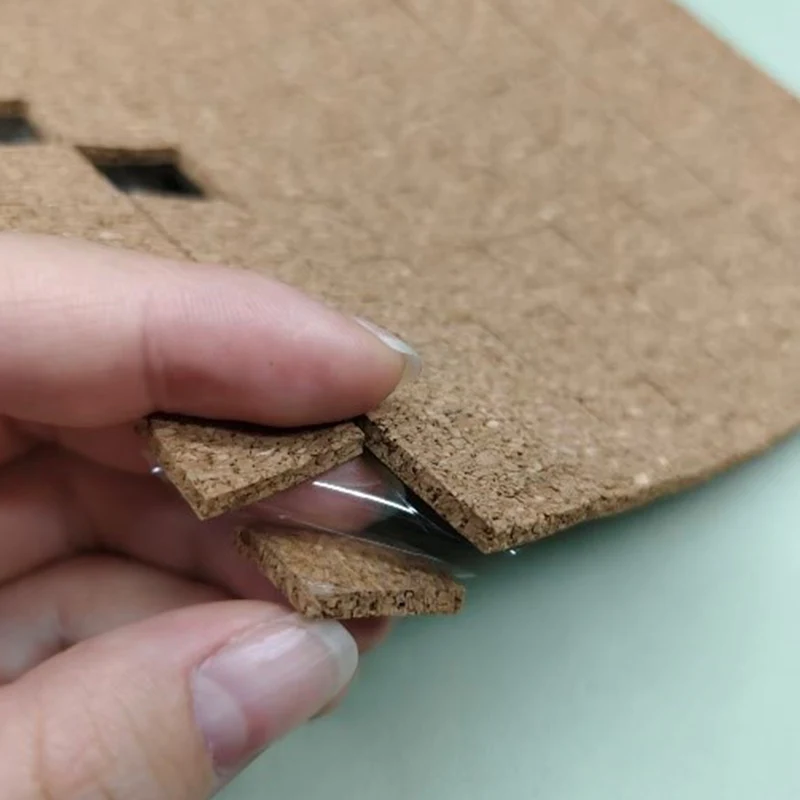 1/8" x 3/4" x 3/4" Μαξιλάρια αποστολής από φελλό με κολλητική βάση, που αποτελούνται από φελλό και αφαιρούμενη κόλλα κυρίως, και χαρτί ή διαφανές PET ως επένδυση στο πίσω μέρος, συσκευασμένα σε κουτί με τη μορφή φύλλων ή ρολού, όπως φαίνεται παρακάτω: